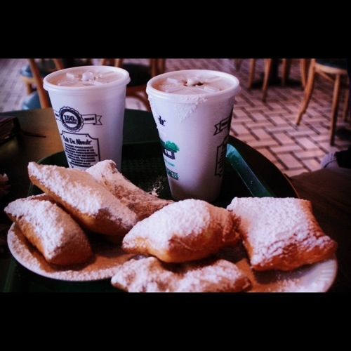 Breakfast at Cafe Du Monde, famous for strong coffee and beignets