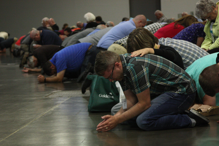 Columbus | Southern Baptists prayed together for two hours Tuesday evening, calling on God to bring spiritual awakening and revival in churches, communities, the United States, and the world. They started with personal repentance, kneeling across the convention center as leaders from around the country led in prayers of forgiveness for prayerlessness, lack of evangelism, division, abortion, sexual depravity, negligence of “the least of these,” and more.