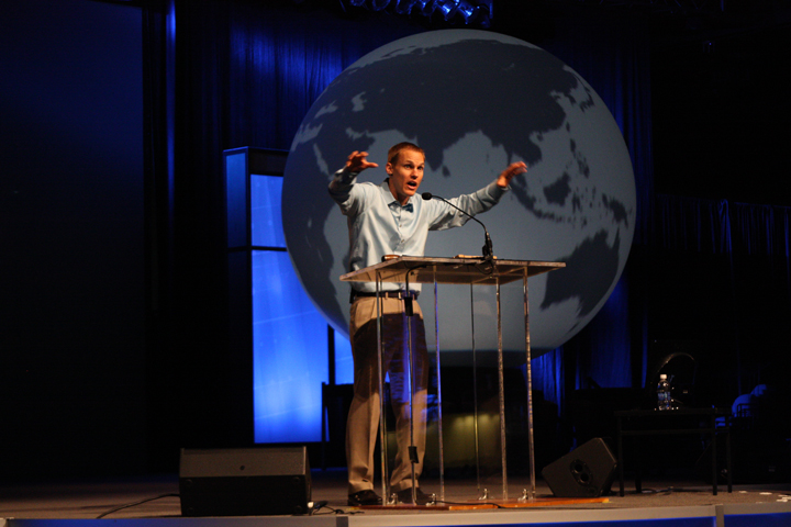 As worship artists Shane & Shane led music from the stage, slides introduced church planters serving across North America and others working across the globe. As their slides showed on giant screens in the convention hall, many of the missionaries stood, illuminated only by simple, book-shaped lights fanned out in front of them.